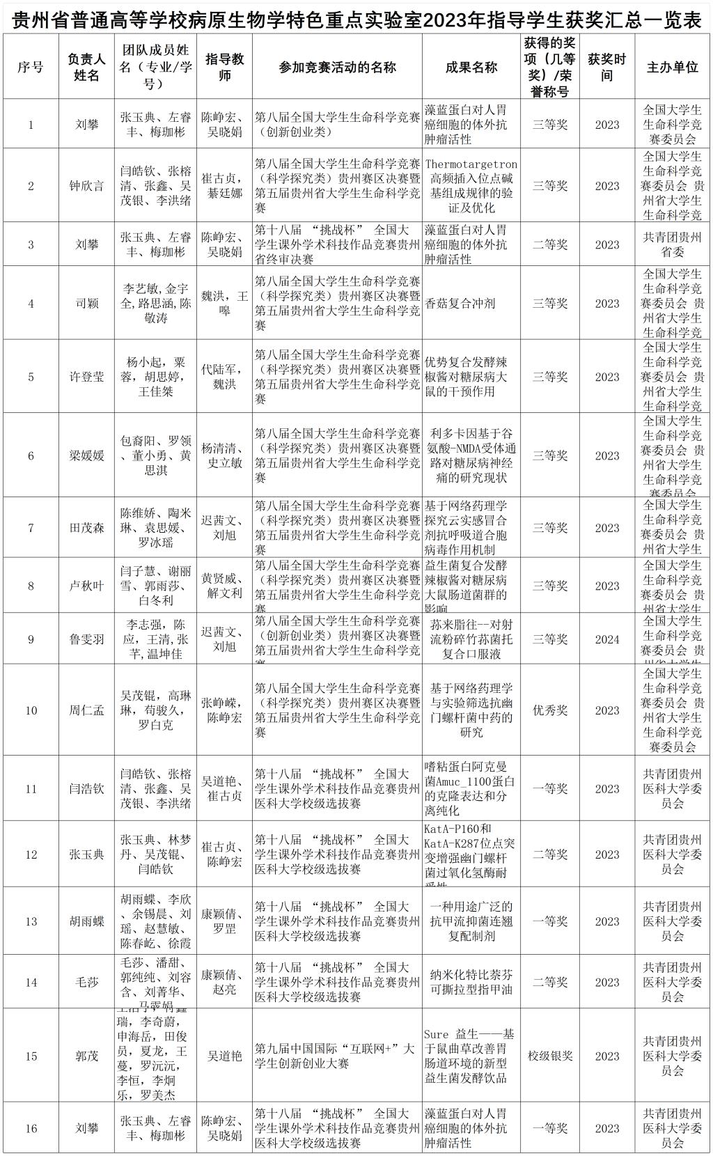 上一条:贵州省普通高等学校病原生物学特色重点实验室2023年度教师获奖情况