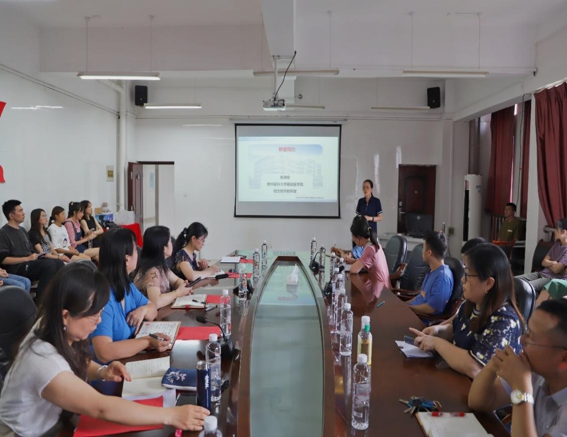 活动主要从导师代表发言、学生代表分享、交流探讨三个环节展开。贵州省“金师”、我院微生物教研室主任陈峥宏教授以“研途同行”为主题从自身的求学历程、工作实践、科研之旅的实例分享了她所经历的艰辛与快乐。