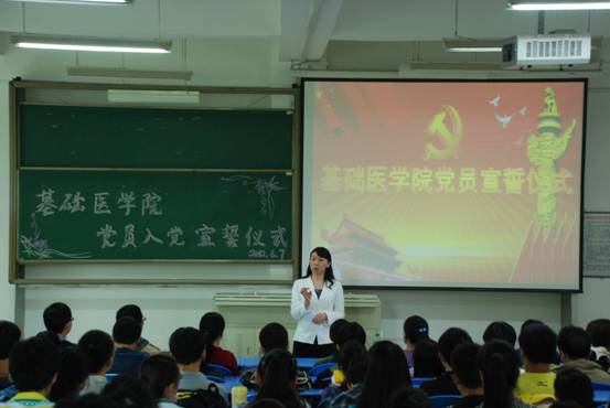 6月7日betway西汉姆在基础二号楼2201教室举行了新党员宣誓仪式。出席此次仪式的有betway西汉姆党委书记张红霞老师、各年级学生党支部书记及120名预备党员。宣誓仪式由2010级学生党支部书记罗恒老师主持。