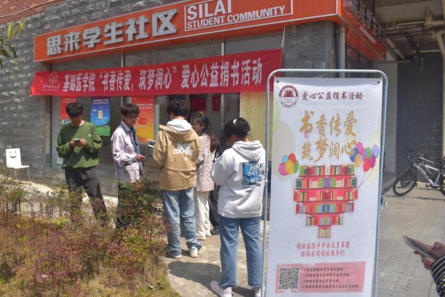 3月22日在思来社区,面向全校师生开展“书香传爱暖童心”爱心公益捐书活动。为全面贯彻落实党的二十大精神,深入开展学雷锋活动,教育引导广大师生自觉践行社会主义核心价值观,营造爱读书、善读书、读好书的浓厚氛围,师生们将闲置的、有意义的且适合中小学生阅读的书籍进行捐赠,为山区的孩子捐献一份爱心,共同参与“书香传爱,筑梦润心”爱心捐书活动。在爱心捐书点,基础学子积极响应,纷纷为捐书活动出一份自己的绵薄之力,现场共接收爱心书本约120本。活动现场,同学们用心写上赠言送给山区的小朋友,每一本书籍、每张书签都代表着一份心意,传递着知识与爱心。