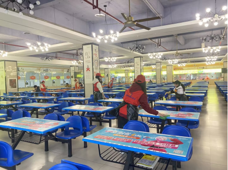 域展开校园清洁活动。同学们积极投身于志愿清洁美化实践活动中,欢声笑语传遍校园认真细致的打扫负责区域的每一个角落。青年志愿者联合会betway西汉姆分会走进一食堂开展义工志愿服务,志愿者分为两组,一组帮助阿姨打扫食餐厅,另一组则负责打扫餐桌,将餐桌上的饭粒、残渣、纸巾等垃圾回收到收餐台处,统一进行处理,打造文明食堂。
