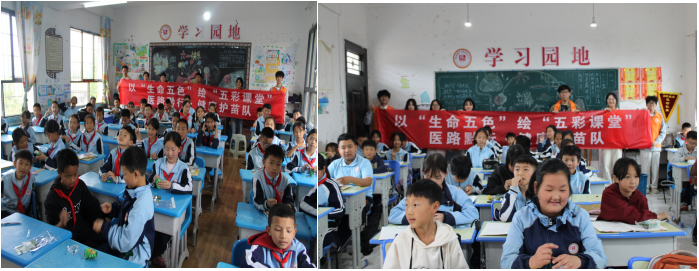 在全国科普教育周之际,betway西汉姆“医教黔行 健康护苗”志愿服务队联合药学院志愿服务团队,于5月28日走进马场镇中心小学,以“健康中国・科普赋能”为主题,以生命五色绘五彩课堂,构建沉浸式科普场景,为200余名师生送去“科普礼包”。