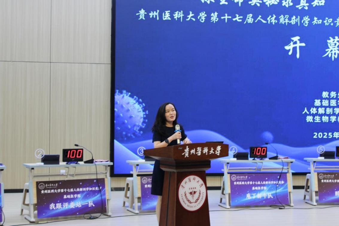 齐晓岚副校长在致辞中强调,人体解剖学与医学微生物学知识竞赛是我校历史悠久的重要学术活动,其持续举办彰显了学校的育人特色与学术活力,为同学们延伸知识、储备能量、拓展视野提供了宝贵平台。她寄语学子三点期望:一要勤学精进,夯实专业根基;二要勇于探索,锤炼科学思维;三要团结协作,展现青春风采,展现贵医学子积极向上的精神风貌。
