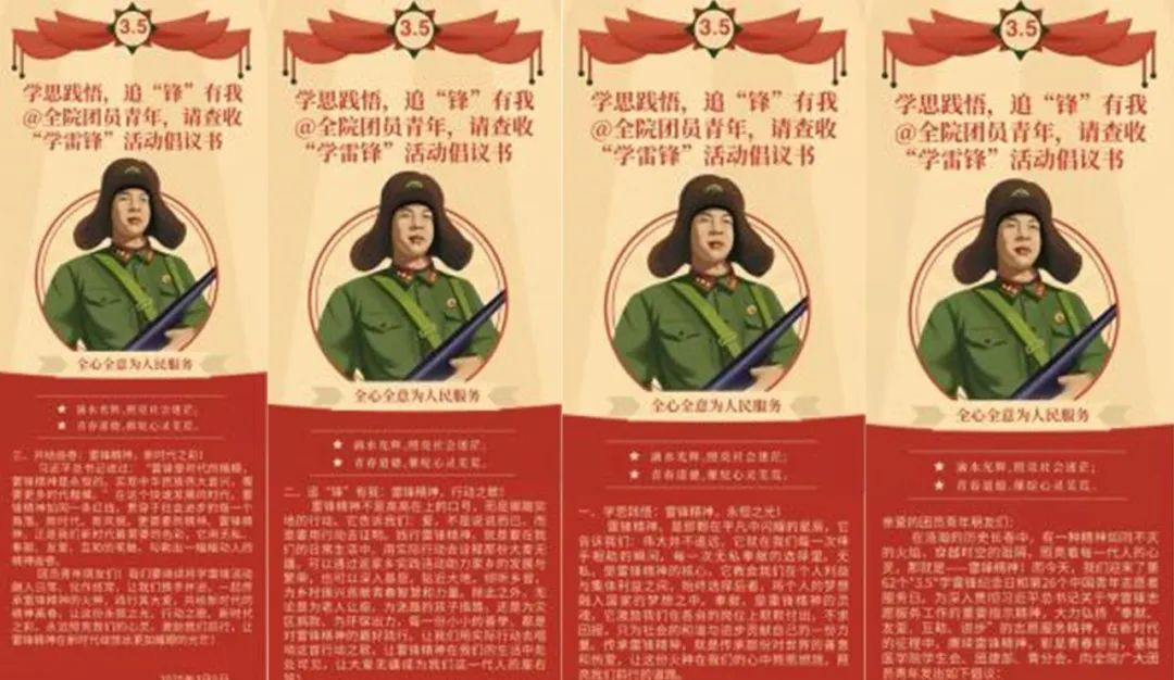 为深入贯彻落实习近平总书记关于志愿服务的重要论述和重要指示批示精神,向全院团员青年发起“学思践悟,追‘锋’有我”“学雷锋”活动倡议书,号召同学们共同参与学雷锋主题志愿服务活动,以青春之名,志愿赴山海,用实际行动践行雷锋精神。
