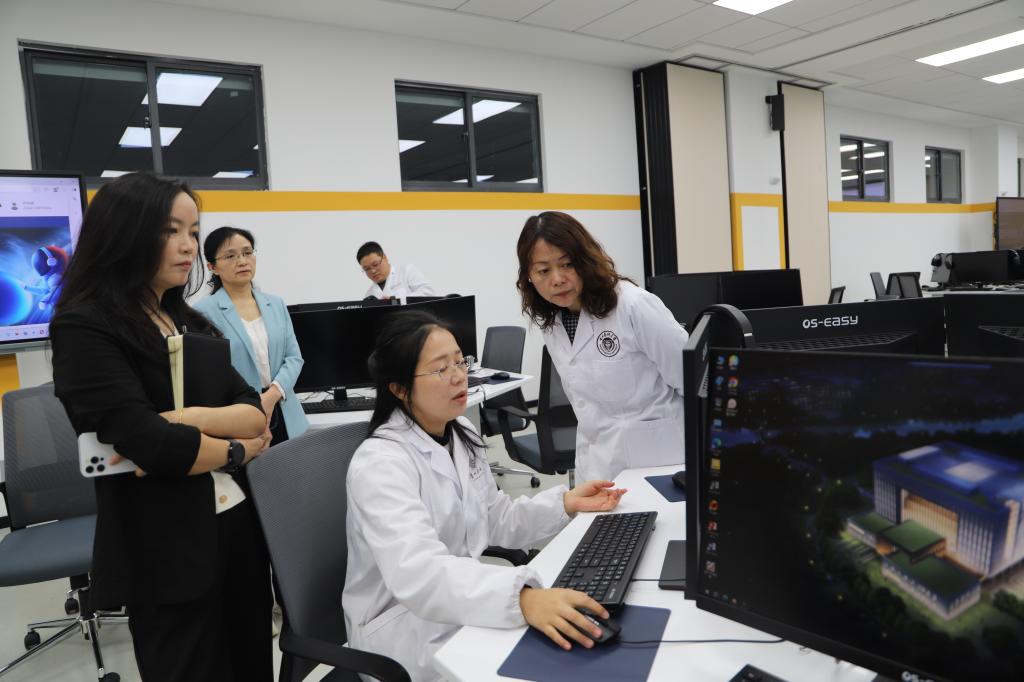 基础医学虚拟仿真实验教学中心负责人吴宁首先详细汇报了实验室的建设历程、硬件配置、软件资源及目前开展的教学项目。齐晓岚现场观摩了学生的虚拟仿真实验操作课程,并详细询问教学效果与学习体验。随后,齐晓岚实地考察了基础医学科学研究中心,仔细查看了各类科研仪器设备的运行状况,与科研人员深入交流,了解科研项目的进展情况、遇到的困难及未来计划。