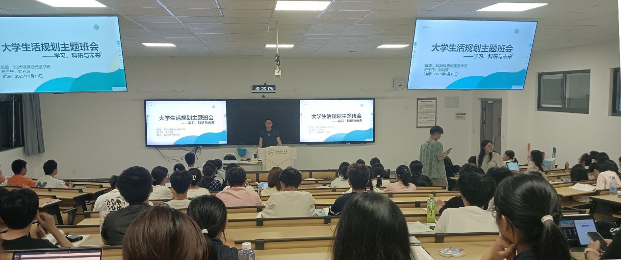 2025年9月18日,基础组团R121教室,2025级眼视光医学班班主任刘利波老师向全体学生开展了“大学生活规划”主题班会。