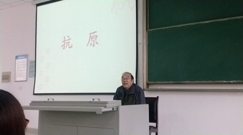 75岁高龄的朱教授结合教材,用渊博的知识、深入浅出地将《医学免疫学》中重要的章节--抗原,向在座的教师和同学们做了细致的讲解。授课过程中朱教授通过联系自身的教学实践和科研经历充分调动同学们的学习积极性,启迪同学们深入思考,营造了良好的课堂气氛,获得了很好的教学效果。课后,朱教授还向年轻教师传授了教学技巧,并就如何开展科研提出了宝贵的意见。