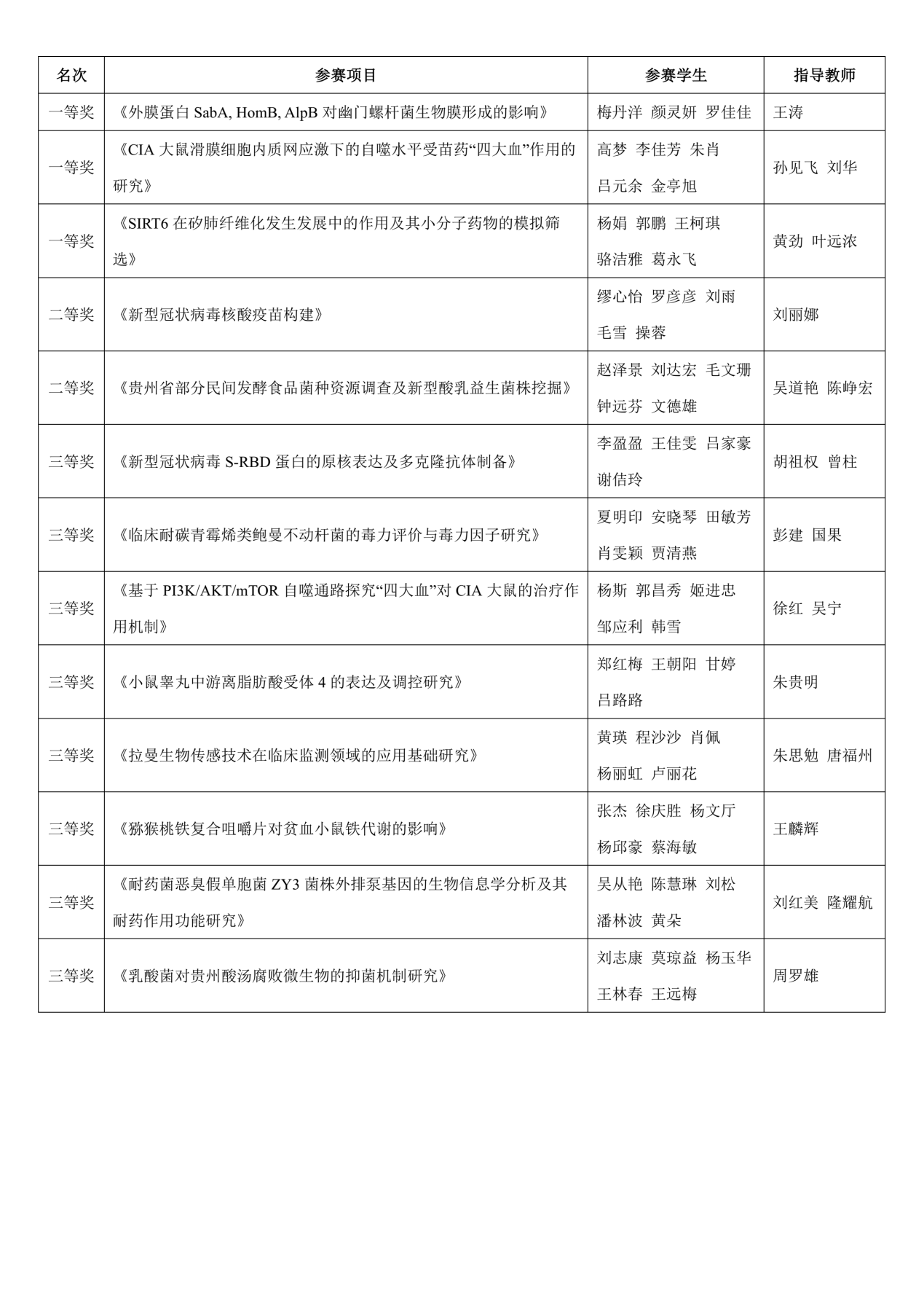 附:第三届贵州省大学生生命科学竞赛暨第五届全国大学生生命科学竞赛(贵州赛区)决赛我校获奖名单