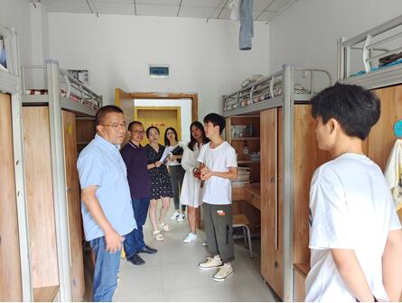 学院领导与新生们进行了亲切交谈,仔细询问学生进校后的感受,饮食、住宿等生活情况,鼓励新生逐步提高自理、自立的能力,希望新生们以积极的心态和良好的面貌尽快适应新到校园学习生活,并强调了宿舍用电安全、外出交通安全、人身财产安全等。
