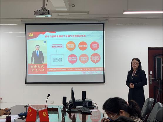 王妤煜从中国共产党有“强大的组织优势、坚实的群众基础、彻底的自我革命”三个方面进一步阐述“中国共产党为什么能”。她强调,一个松松垮垮、稀稀拉拉的组织,是不能干事,也干不成事,加强纪律建设是全面从严治党的根本之策,在“党纪面前人人平等”,违纪必究,违纪必严。她讲到中国共产党始终坚持以人民利益为中心,并且勇于自我革命,是我们党最鲜明的品格,是中国共产党的光荣传统。在新冠疫情防控过程中,共产党人用实际行动让人民有获得感、幸福感、安全感,得到老百姓的衷心拥护和坚定支持。她希望广大师生党员要认真学好四本书——习近平《论中国共产党历史》《毛泽东、邓小平、江泽民、胡锦涛关于中国共产党历史论述摘编》《习近平新时代中国特色社会主义思想学习问答》《中国共产党简史》,在党史学习中汲取奋进力量。
