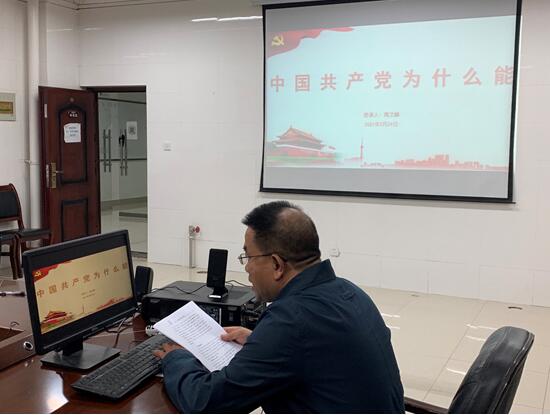 禹文峰从“科学的理论指导”和“坚定的理想信念”两个方面深入讲述了中国共产党之所以能够完成近代以来各种政治力量不可能完成的艰巨任务,就在于我们党选择了并始终把马克思主义这一科学理论作为自己的行动指南,坚持在实践中不断丰富和发展马克思主义。带领在场人员再次重温中国共产党党史,并指出一部中国共产党的历史,就是一部坚持把马克思主义基本原理同中国实际和时代特点相结合,不断推进马克思主义中国化的历史。