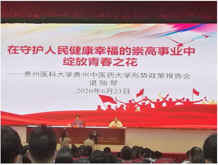 3、协和班杨慧兰:今天,我有幸参加谌贻琴省长以“在守护人民健康幸福的崇高事业中绽放青春之花”为主题的pbw必威西汉姆联贵州中医药形势政策报告会。从谌贻琴省长的汇报中,我看到了基层医疗卫生服务机构中,医务人员的匮乏。省长告诉我们,贵州的医疗卫生事业虽然在近几年来取得了大的进步,但我们基层医疗的人员、设备依旧有很大的缺口,许多乡村农民小病靠拖,大病靠挨。我们青年一代,应努力学好理论知识,多往基层走,为乡镇的医疗卫生事业贡献一份属于自己的力量。