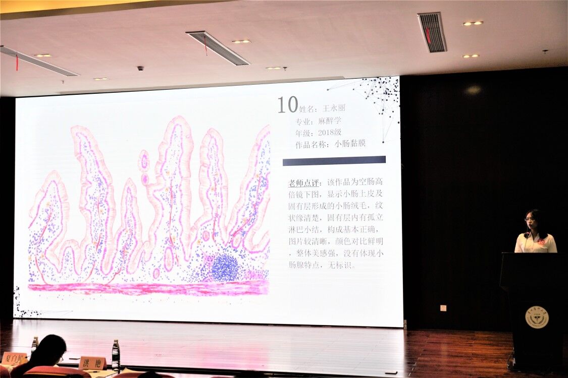 随后,同学们对自己的作品创作进行了精彩的阐述,经过评委老师们的认真评审最后口腔医学院黄丽同学的作品《淋巴之美》荣获一等奖,betway西汉姆李晏宁同学的作品《生精小管》、betway西汉姆代亚芸同学的《卵巢仿真图及各级卵泡》和来自海外学院的Erica的《肝小叶或门管区》荣获二等奖,海外学院的Malik Muhammad Zain- ul -Abideen同学的作品《卵巢》、betway西汉姆郭甜甜同学的作品《卵巢》、betway西汉姆梁会同学的作品《肾小体》、医学检验学院张陈晨同学的作品《初级卵泡组织切片光镜下示意图》、麻醉学院王永丽同学的《小肠黏膜光镜绘图》荣获三等奖,口腔医学院糜文乐同学的《斑斓》和医学影像学院周志博同学的《肝小叶》荣获最佳人气奖。