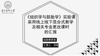 会议伊始,组织胚胎学教研室主任洪艳老师做了关于《组织学与胚胎学》实验课采用线上线下混合式教学实施方案的汇报,从传统实验教学存在的问题、目前国内组织学实验教学现状、上半年混合式教学改革的开展情况以及教学效果、该课程实施实验课混合式教学的条件、存在的问题等方面做了深入、细致的阐述。