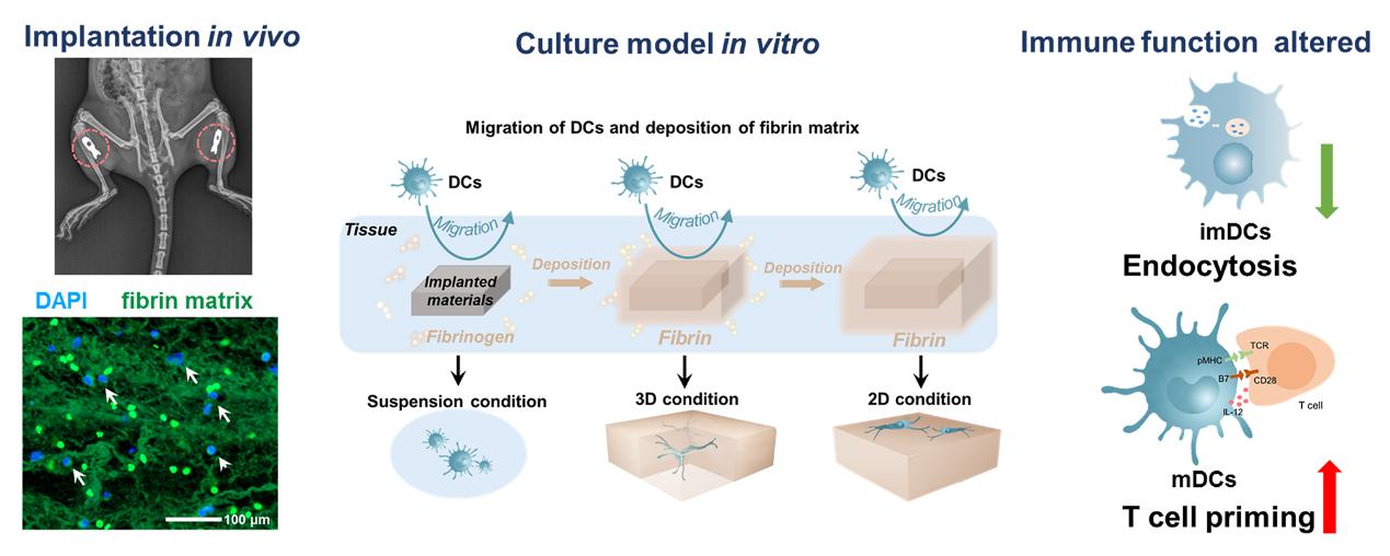 1. 生物材料植入诱导的纤维蛋白基质沉积和DCs的募集