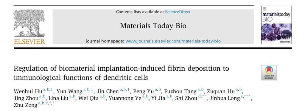 2022年2月26日,betway西汉姆曾柱教授领衔的PI团队在Materials Today Bio杂志上发表了题为Regulation of biomaterial implantation-induced fibrin deposition to immunological functions of dendritic cells的研究论文。该研究发现,DCs能够响应局部病理微环境和力学微环境,表现出明显的形态改变和细胞骨架重构,并获得相应的免疫表型和力学表型,其力学-化学耦合机制涉及RhoA和CDC42信号通路。这项工作不仅有助于更好地理解植入生物材料引发的免疫反应的精确过程,而且对生物材料的合理设计具有重要意义。