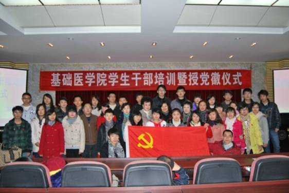12月9日下午,betway西汉姆学生干部培训暨授党徽仪式在基础二号楼会议室举行。贵阳医学院党委宣传部部长金也非,学工处处长周嫆,后勤党总支书记张玲玲、副总经理郝萍,betway西汉姆党委书记张红霞、副书记周红、副院长曾柱出席本次活动,betway西汉姆党委副书记周红主持会议。贵阳医学院党委宣传部部长金也非首先作动员讲话,讲话围绕“学生干部应该具备什么样的素质”这一中心话题开展,强调学生干部应具备思想道德素质、科学文化素质、良好的心理素质和较强的工作能力。后勤党总支书记张玲玲围绕“后勤工作与学生干部工作”开展,使学生干部进一步明确工作的要求与方法。betway西汉姆党委书记张红霞对学生干部培训进行了部署。本次学生干部培训以讨论、座谈、素质拓展等形式培训,培训活动对学生干部正确处理学习和工作的关系,对提高政治觉悟,强化心理素质,强化服务意思和奉献精神起到积极的作用。学生代表雷琳同学围绕“责任、目标和选择”表达了学生干部的意愿与信心。紧接着与会领导、和辅导员对学生新党员进行授党徽仪式,党员们在党旗下庄严宣誓。