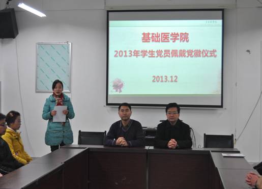 为弘扬爱国主义精神,保持共产党员的先进性,积极发挥党员创先争优的模范带头作用。12月19日中午,在3号教学楼会议室betway西汉姆举行了2013年新党员佩戴党徽仪式。betway西汉姆党委书记徐国强,党委副书记廖兴江,学生科、分团委、各年级辅导员老师及14位学生党员参加了此次仪式。仪式由分团委副书记秦雅倩主持。