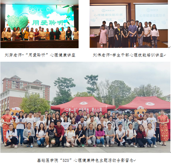 在2018-2019学年中,我院高度重视心理健康教育工作,积极开展、落实学院心理健康工作站、心理辅导员、班级心理委员、寝室心晴联络员“四级网络”构建。推动“三教一扶”创新教育平台——爱心小屋搭建,加强心理健康知识的宣传普及,开展特色专题教育讲座,在促进学生心理素质提升中发挥了重要作用。该学年,我院开展了“爱心小屋——让爱启航”活动,汇聚了第一批来自于师生的爱心捐赠;邀请全国“时代楷模”刘芳老师举行“用爱聆听”心理健康讲座;邀请贵州师范大学国家二级心理咨询师——刘伟老师开展学生干部心理技能培训讲座;结合“5·25”心理健康节,开展了独具特色的荧光夜跑、心理剧表演等特色活动。
