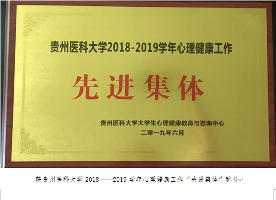 在学校评选中,我院荣获pbw必威西汉姆联2018——2019学年心理健康工作“先进集体”称号。